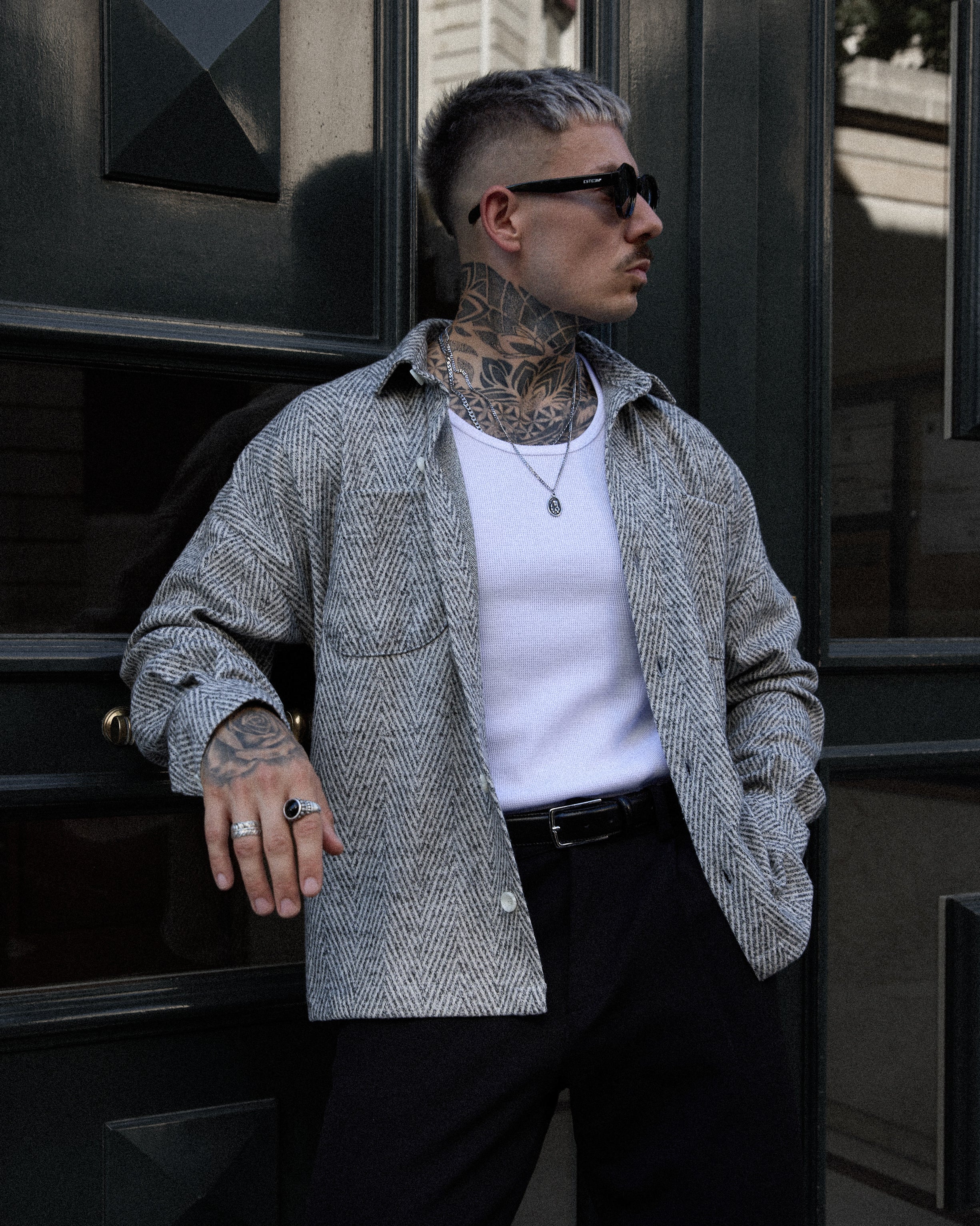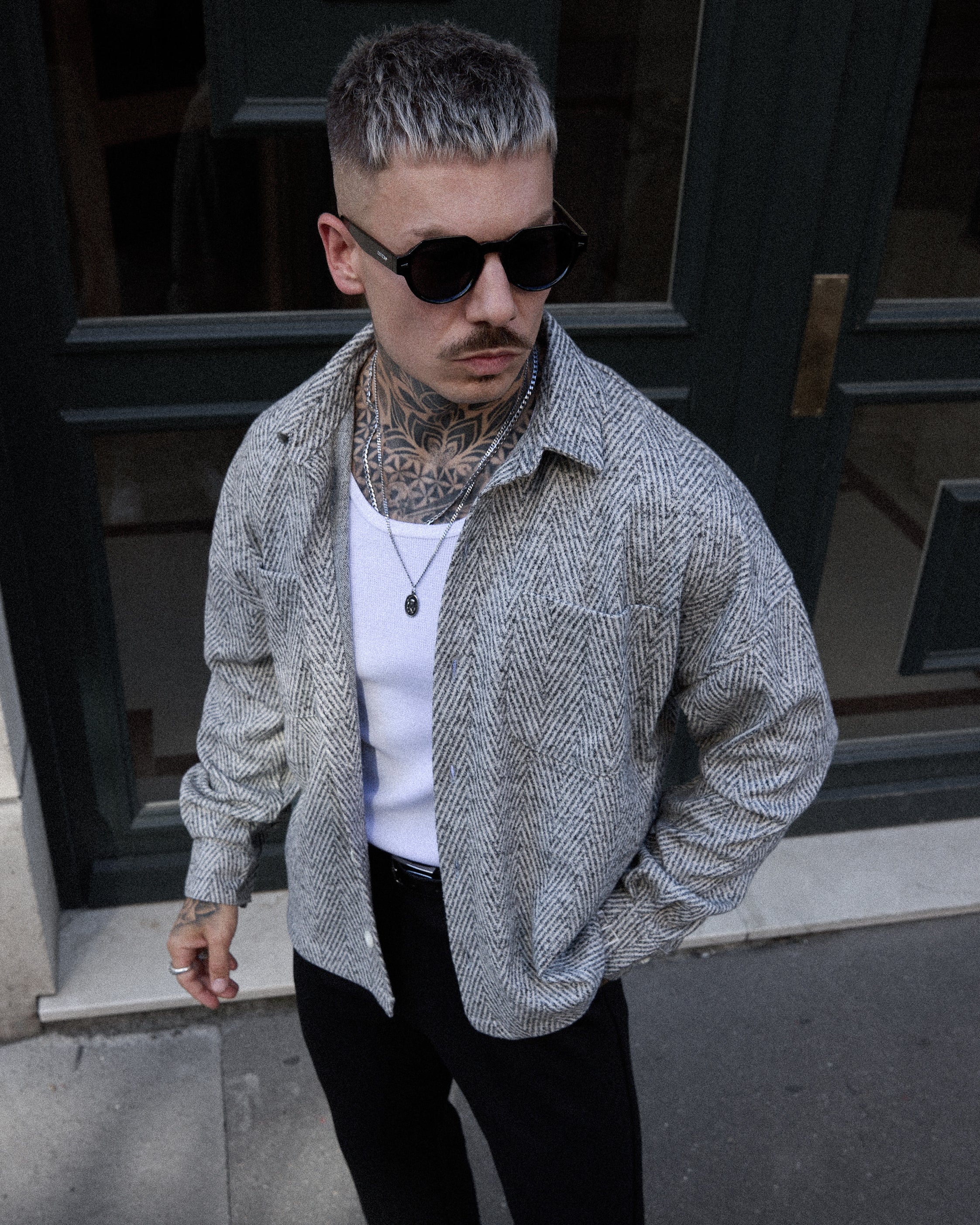 An oversized flannel shirt in a distinctive herringbone look – crafted from premium fabric with a bold texture that makes a statement.