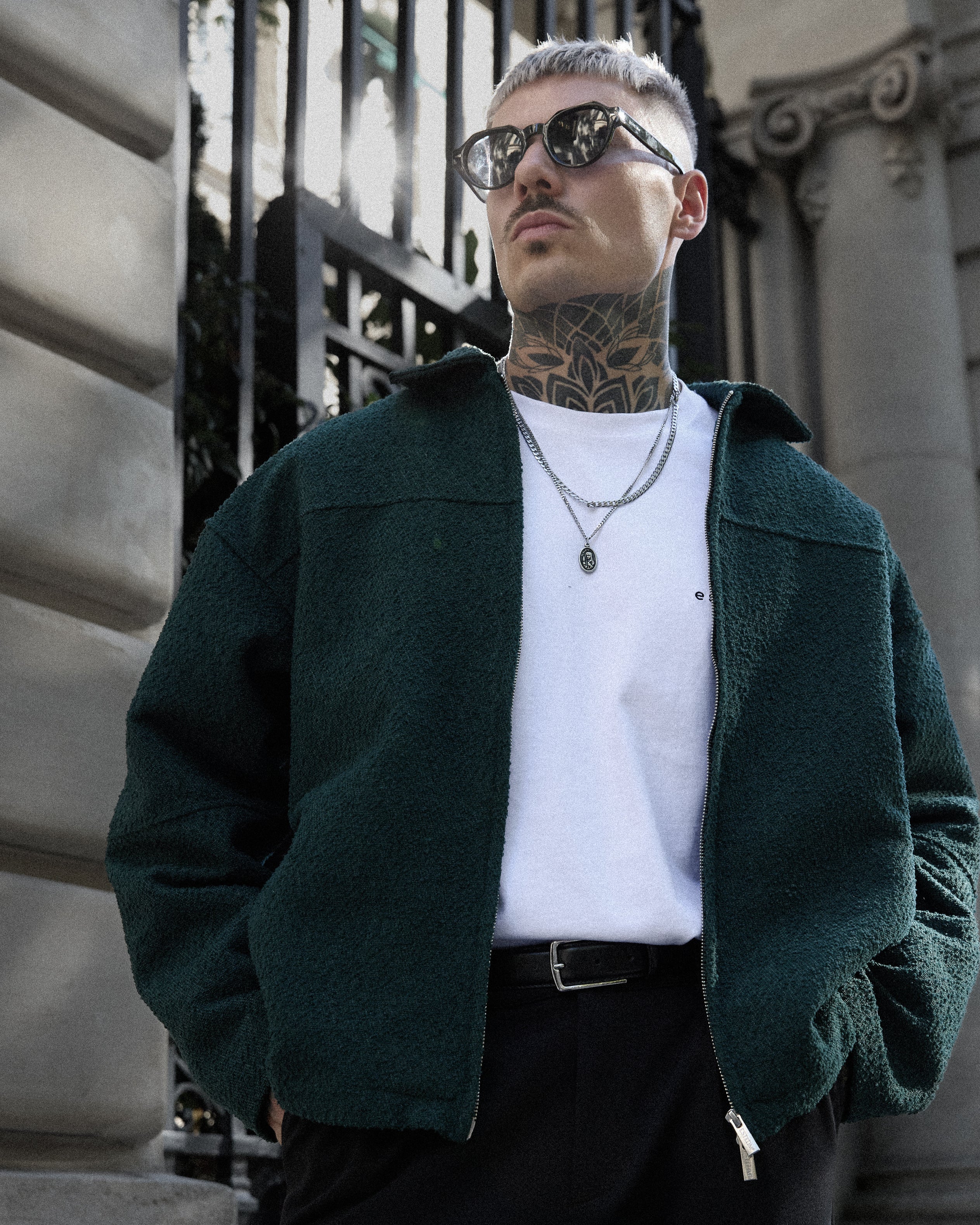 DARKGREEN BOUCLÉ OVERSIZED JACKET