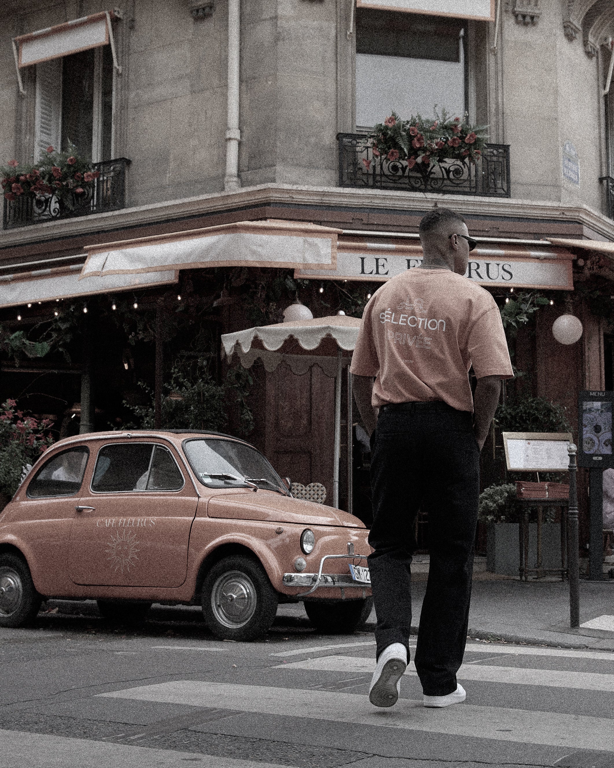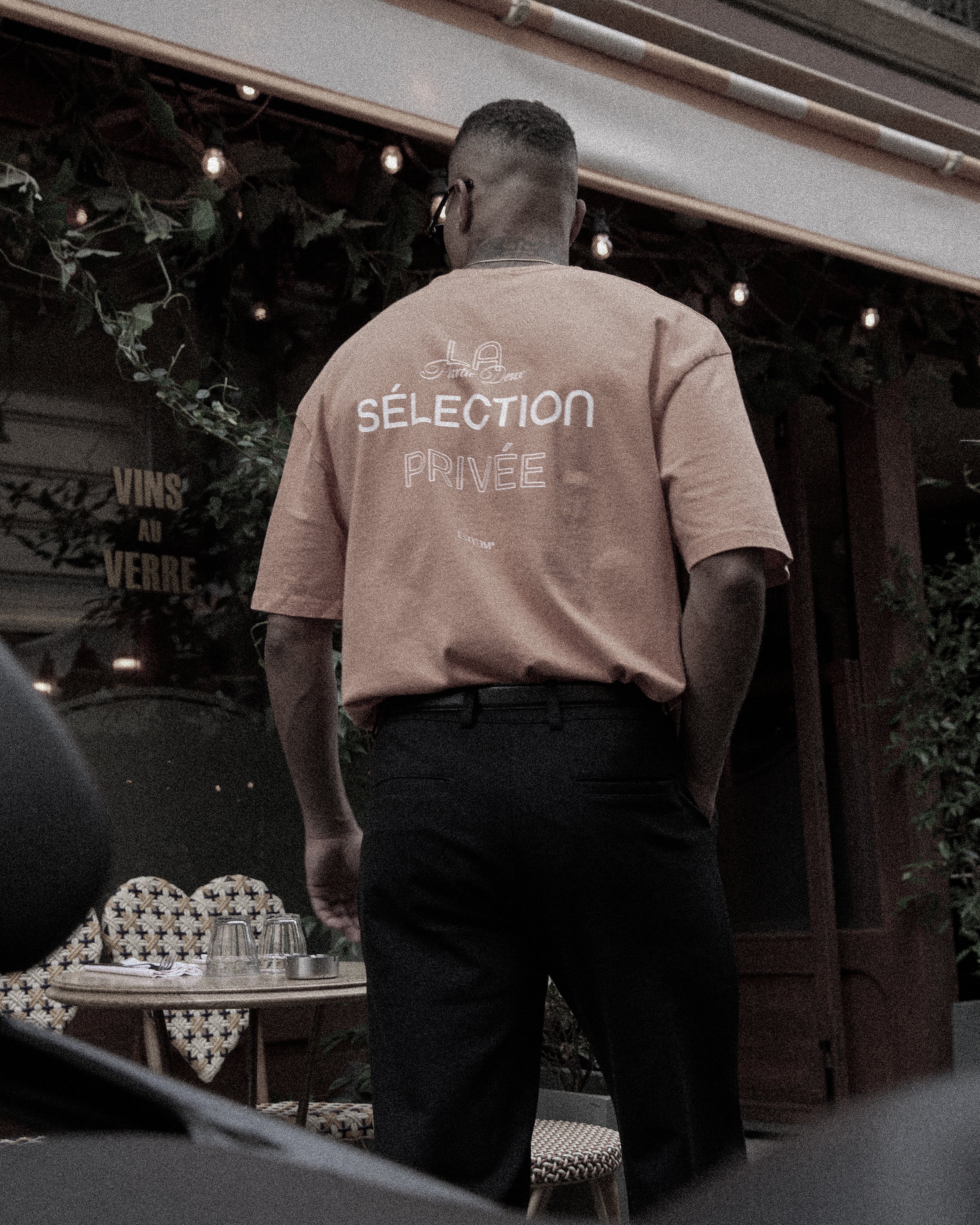 « La Sélection Privée » – placée discrètement sur la poitrine, mise en scène en grand dans le dos.