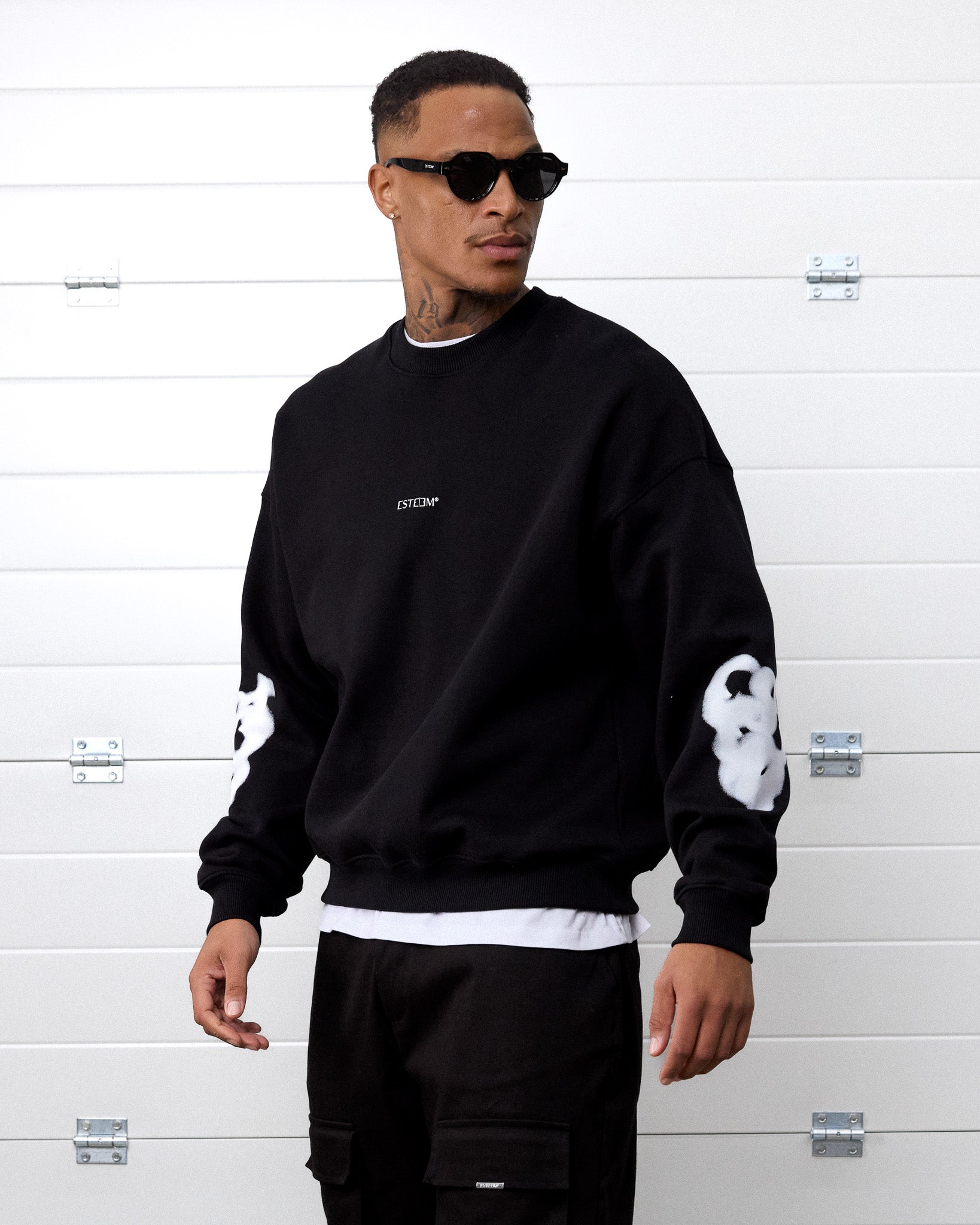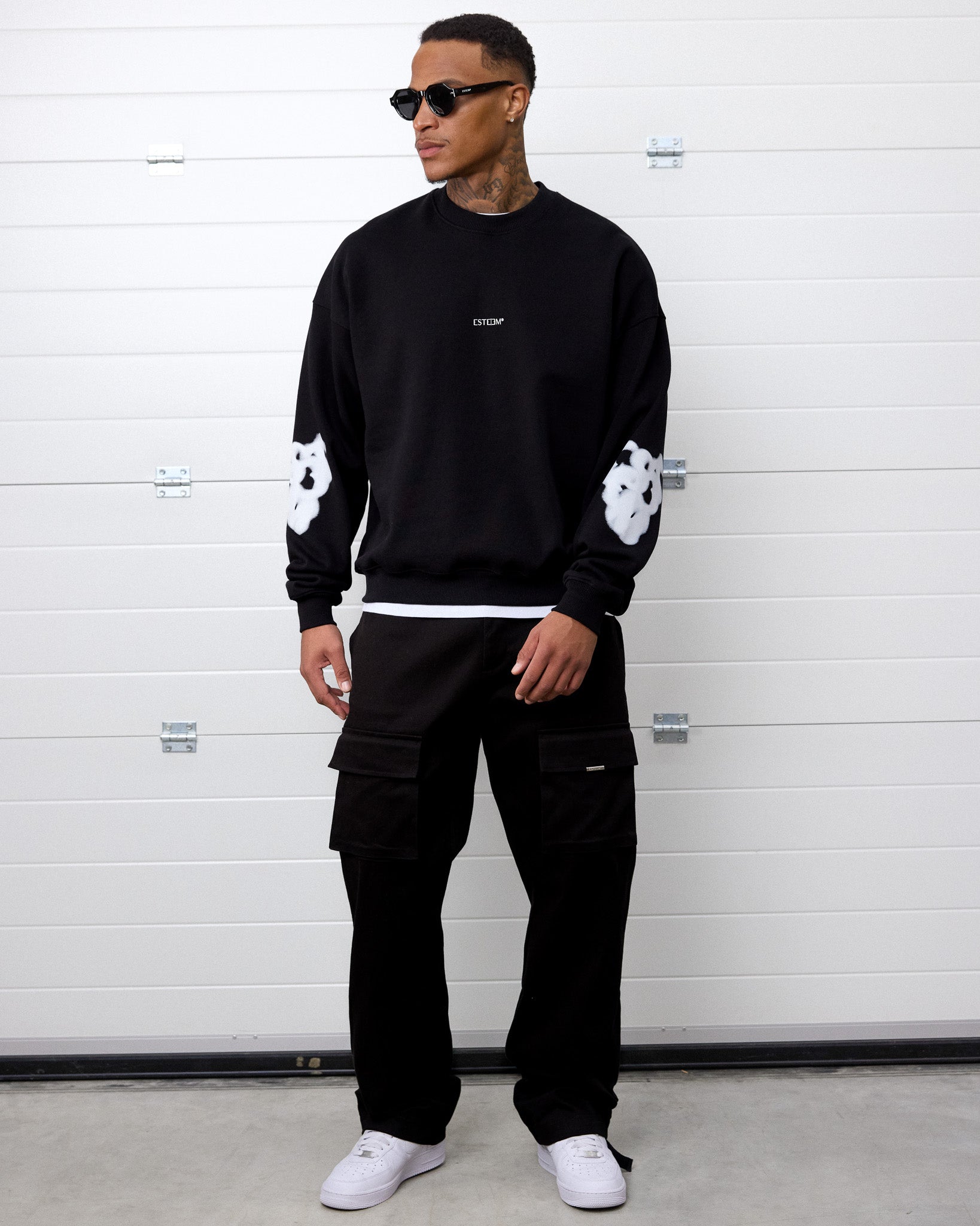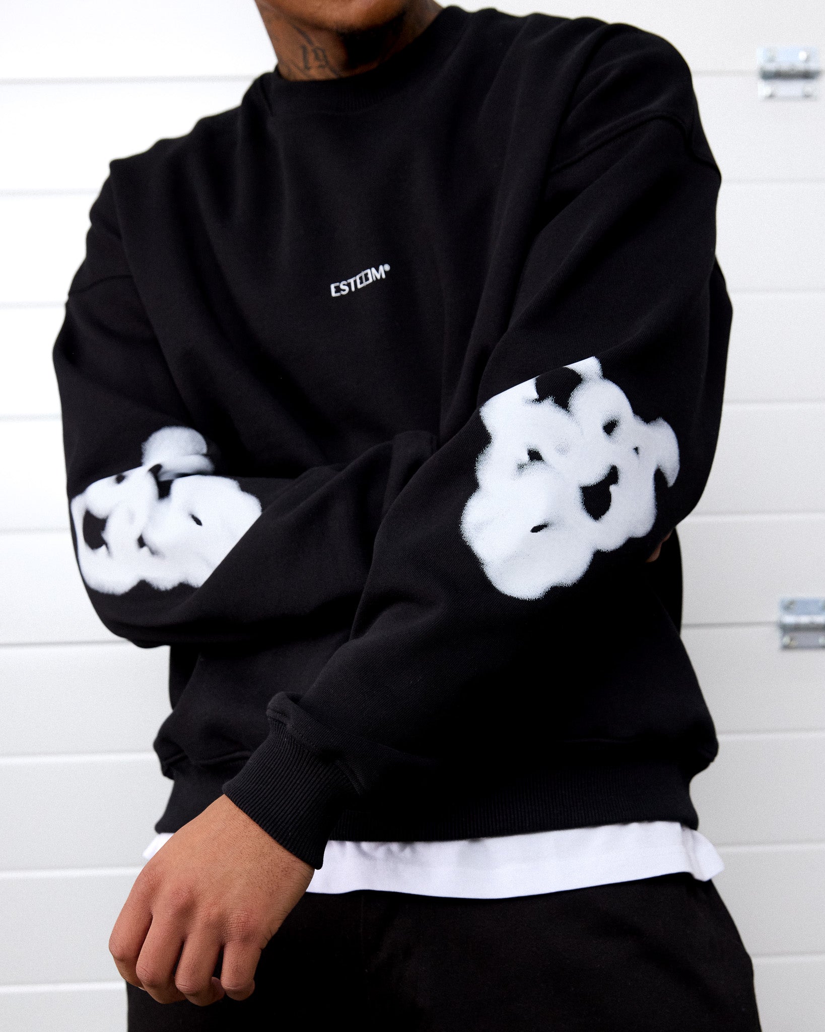 Un imprimé sur manches qui transforme le lettrage en un motif flou et créatif avec une forme de cœur subtile — présent sur les deux manches.