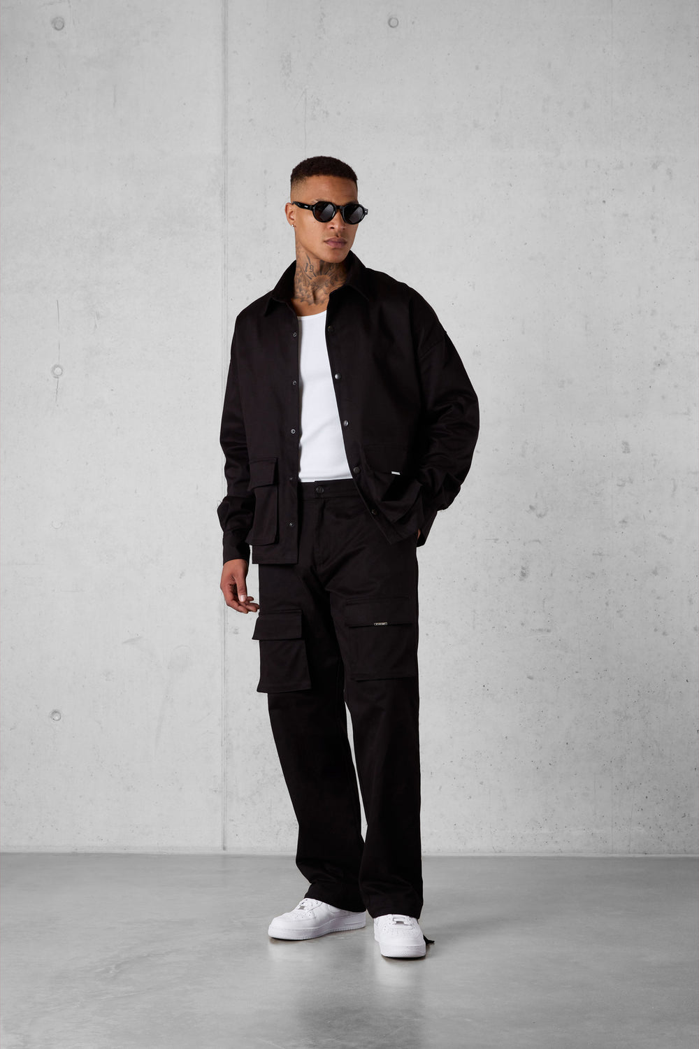 BLACK CARGO OVERSIZED CHINO SHIRT
