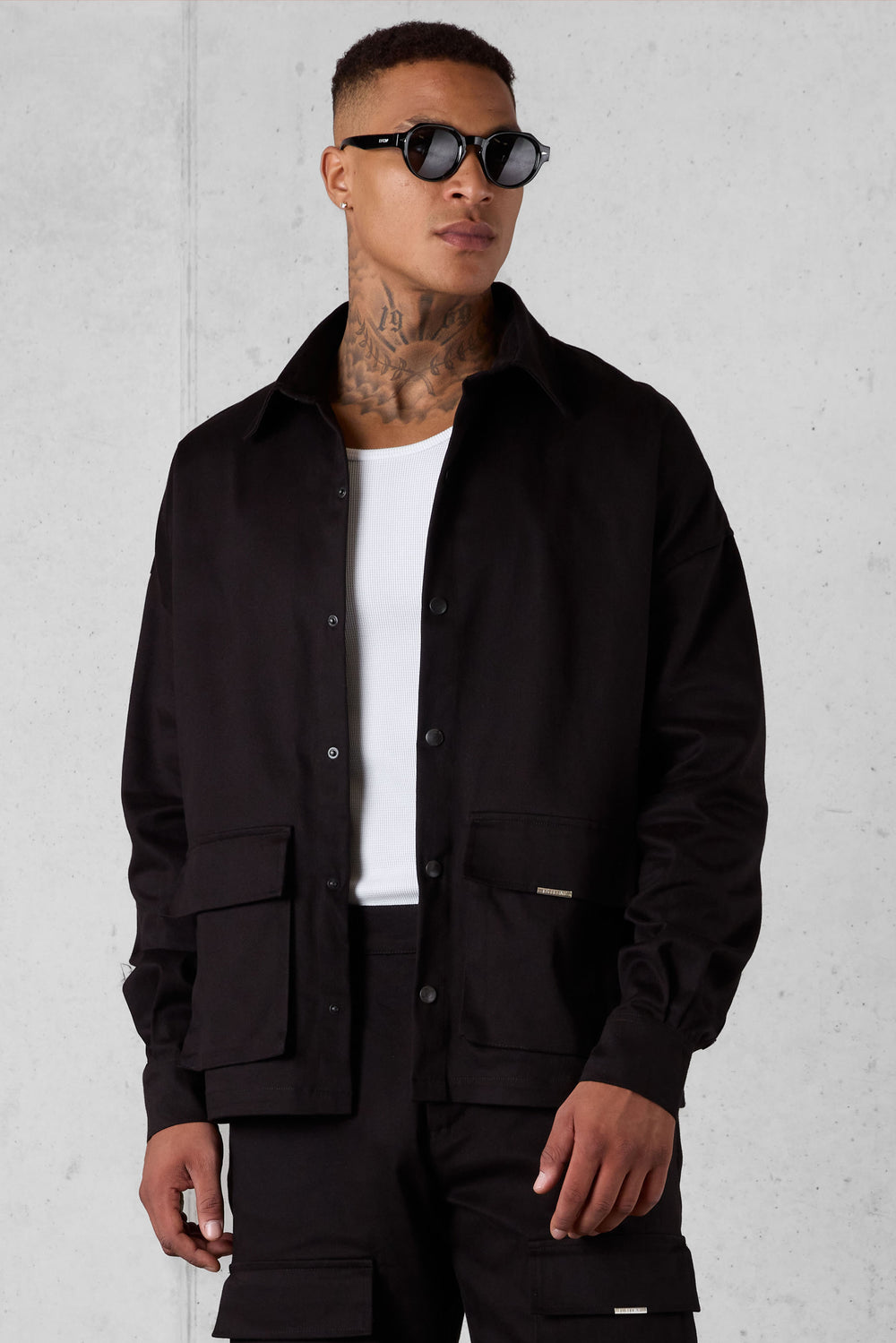 Silhouette oversize avec poche fendue sur la partie inférieure de la jambe.