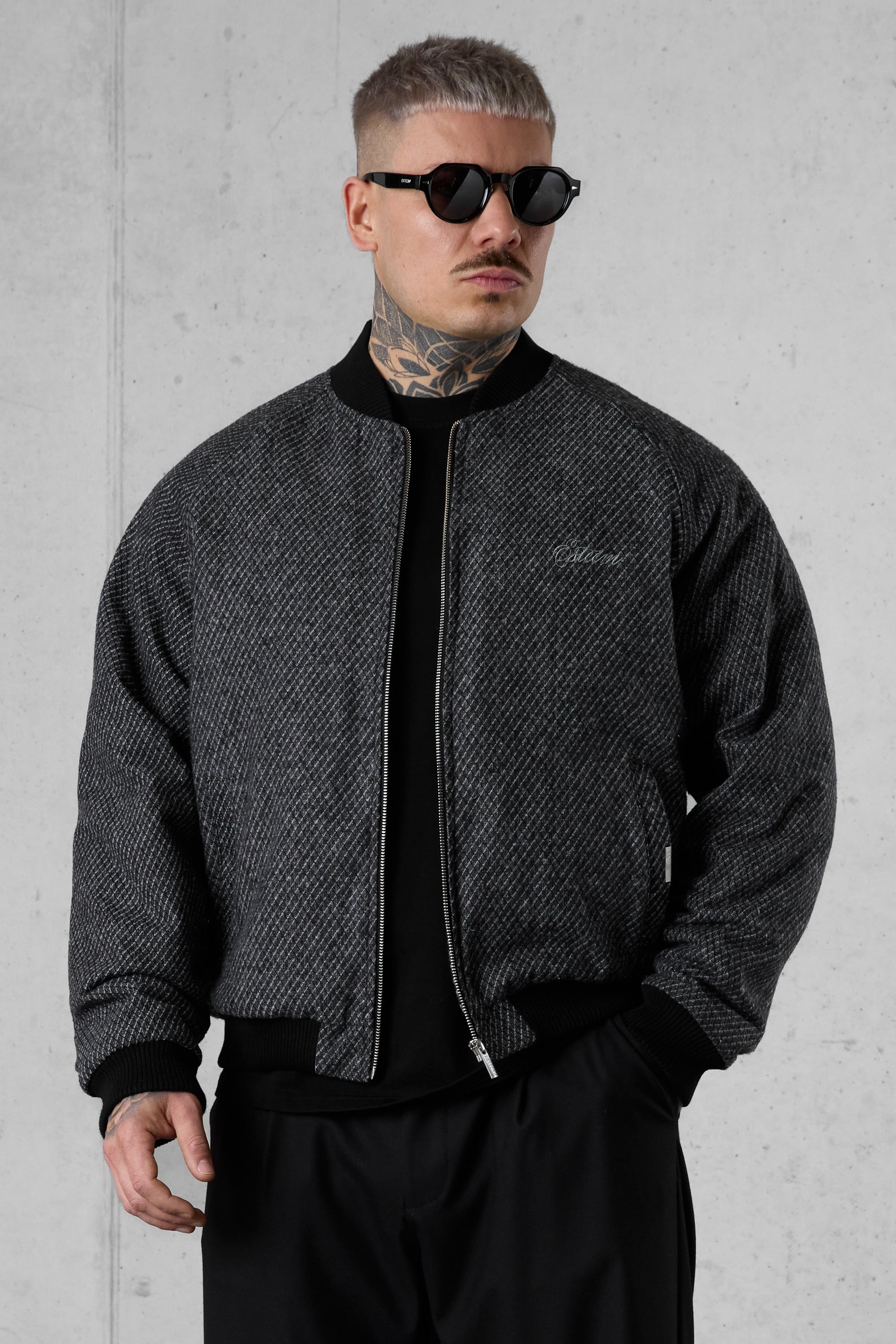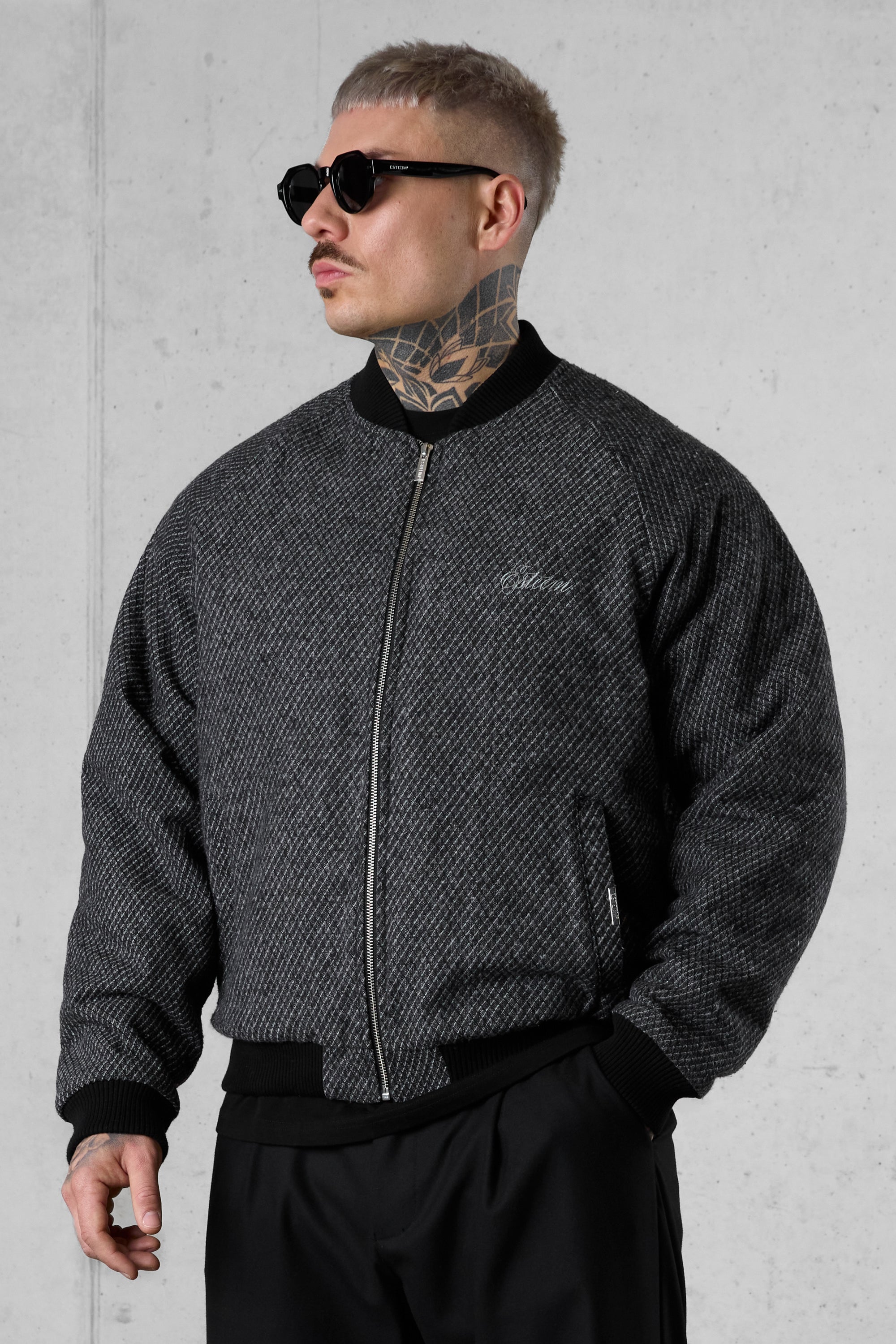 Bomber légèrement matelassé à la coupe cropped, confectionné dans un tissu extérieur gris-noir à l’effet shadow. Des détails de broderie discrets et un patch en métal complètent le design.