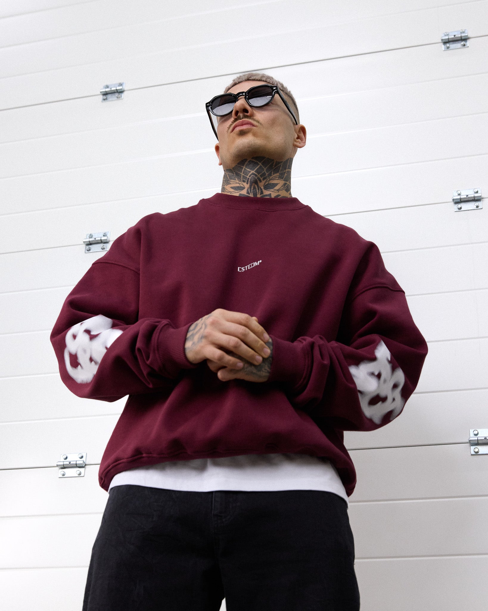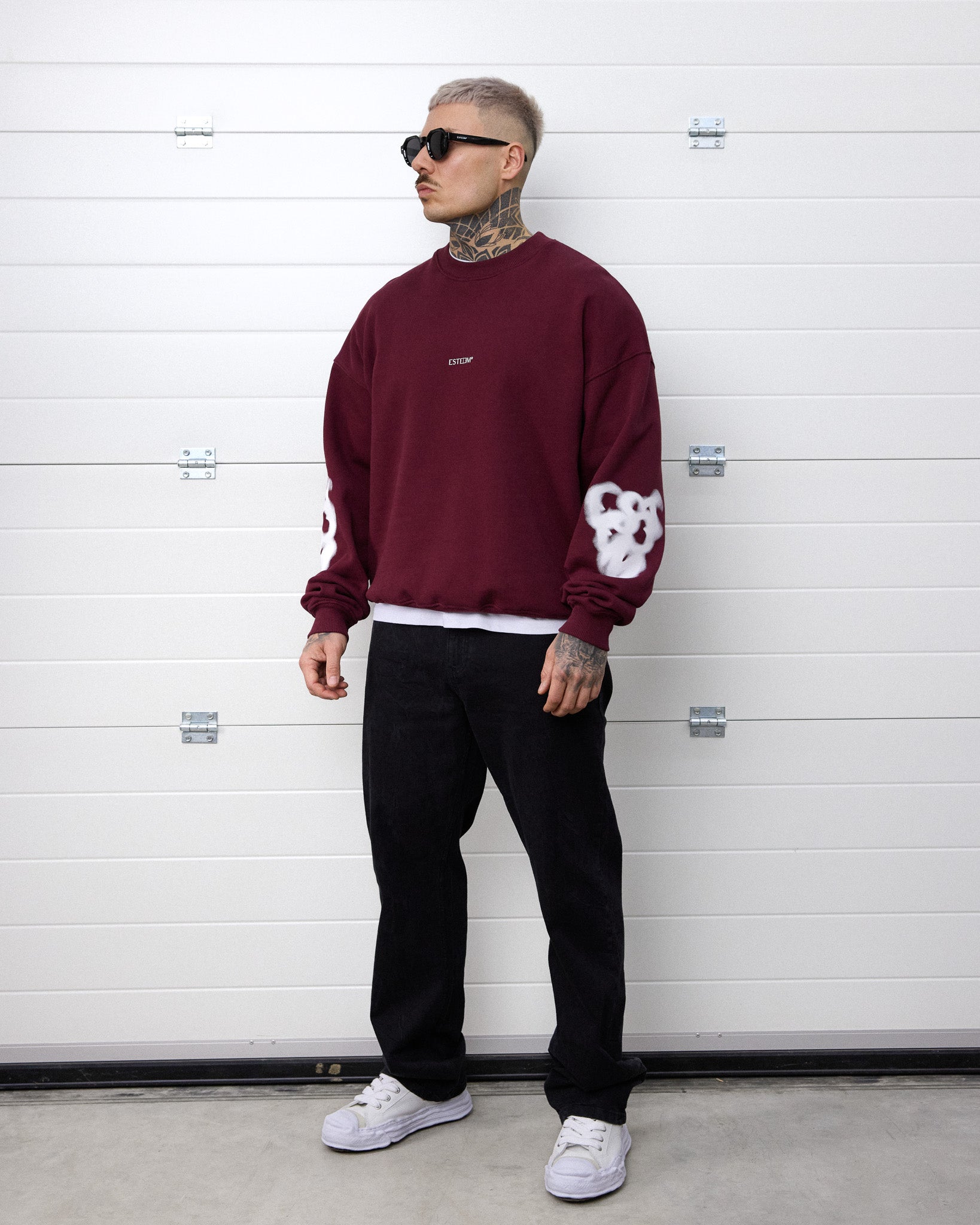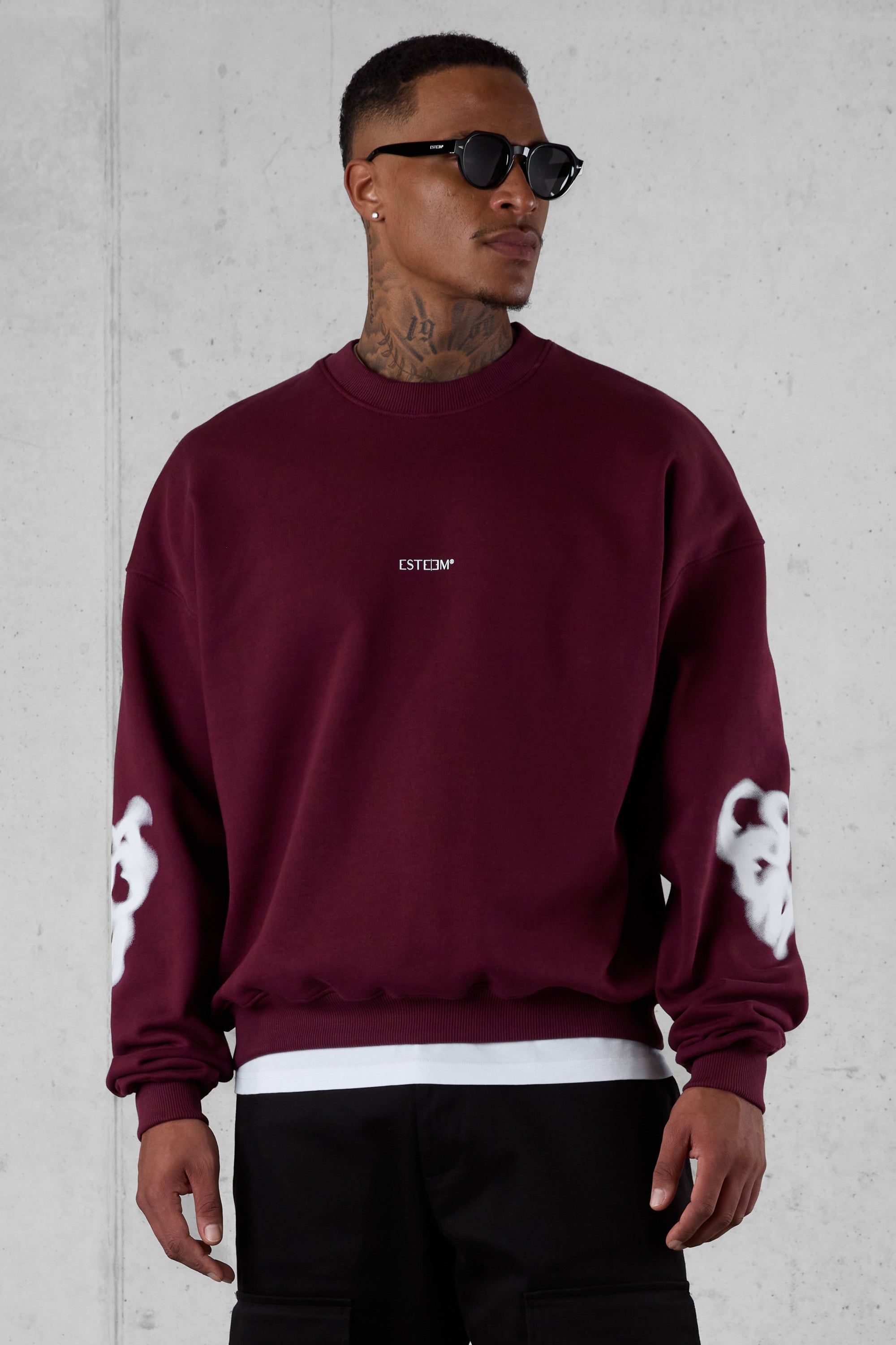 CABERNET BLURRED HEARTS OVERSIZED SWEATER
