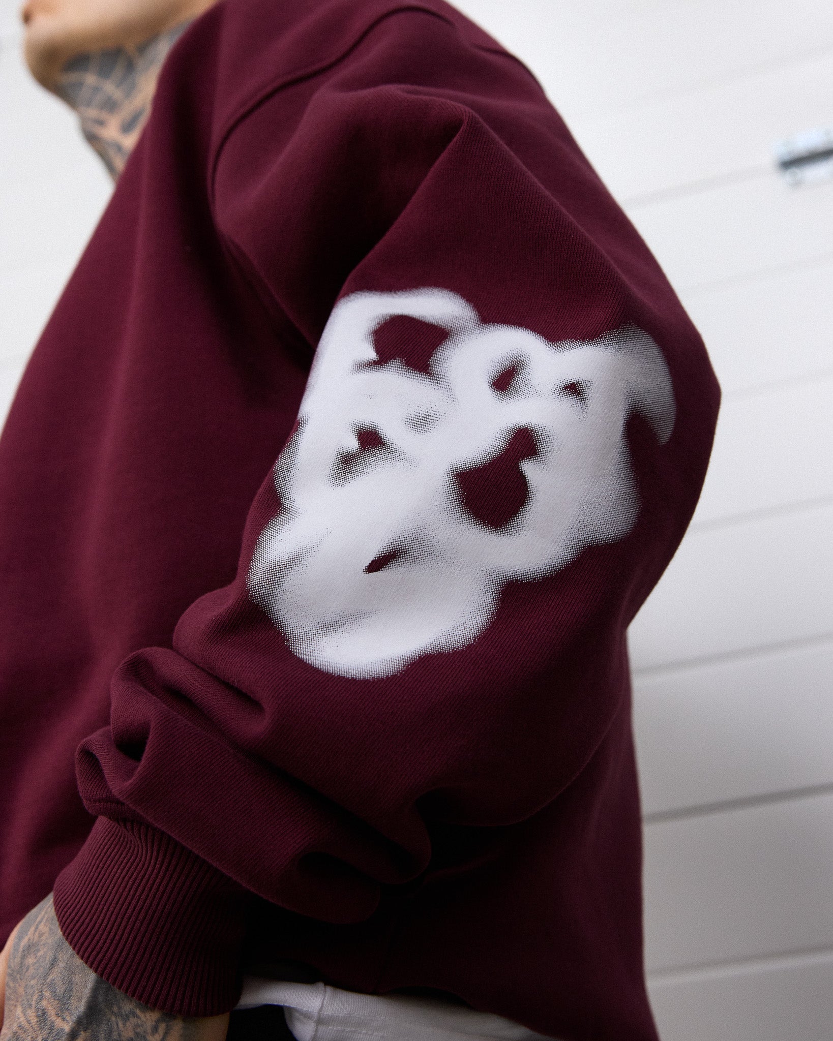 A sleeve print that transforms the lettering into a creative blurred design with a subtle heart shape — featured on both sleeves.