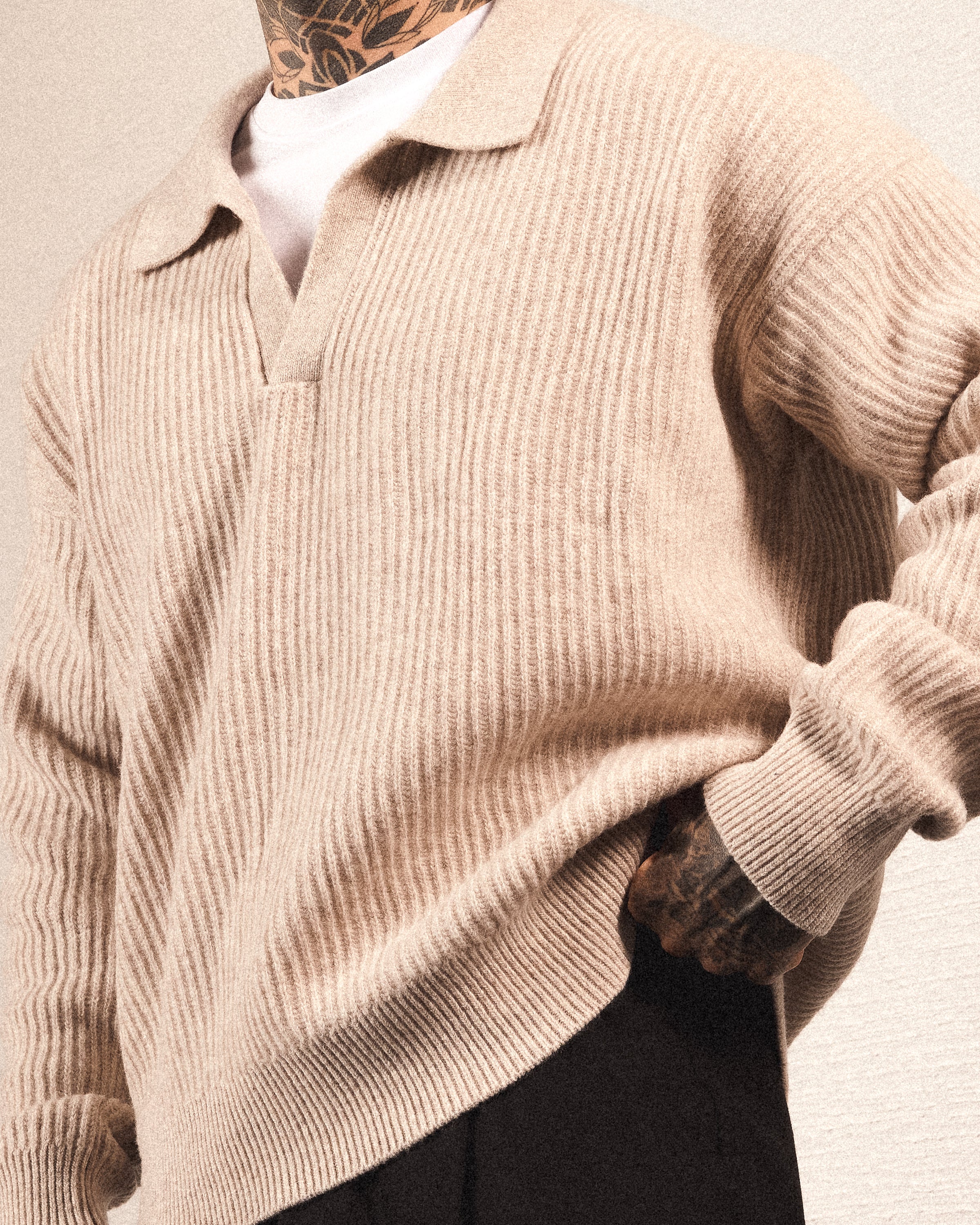 GREIGE OVERSIZED KNIT POLO SWEATER