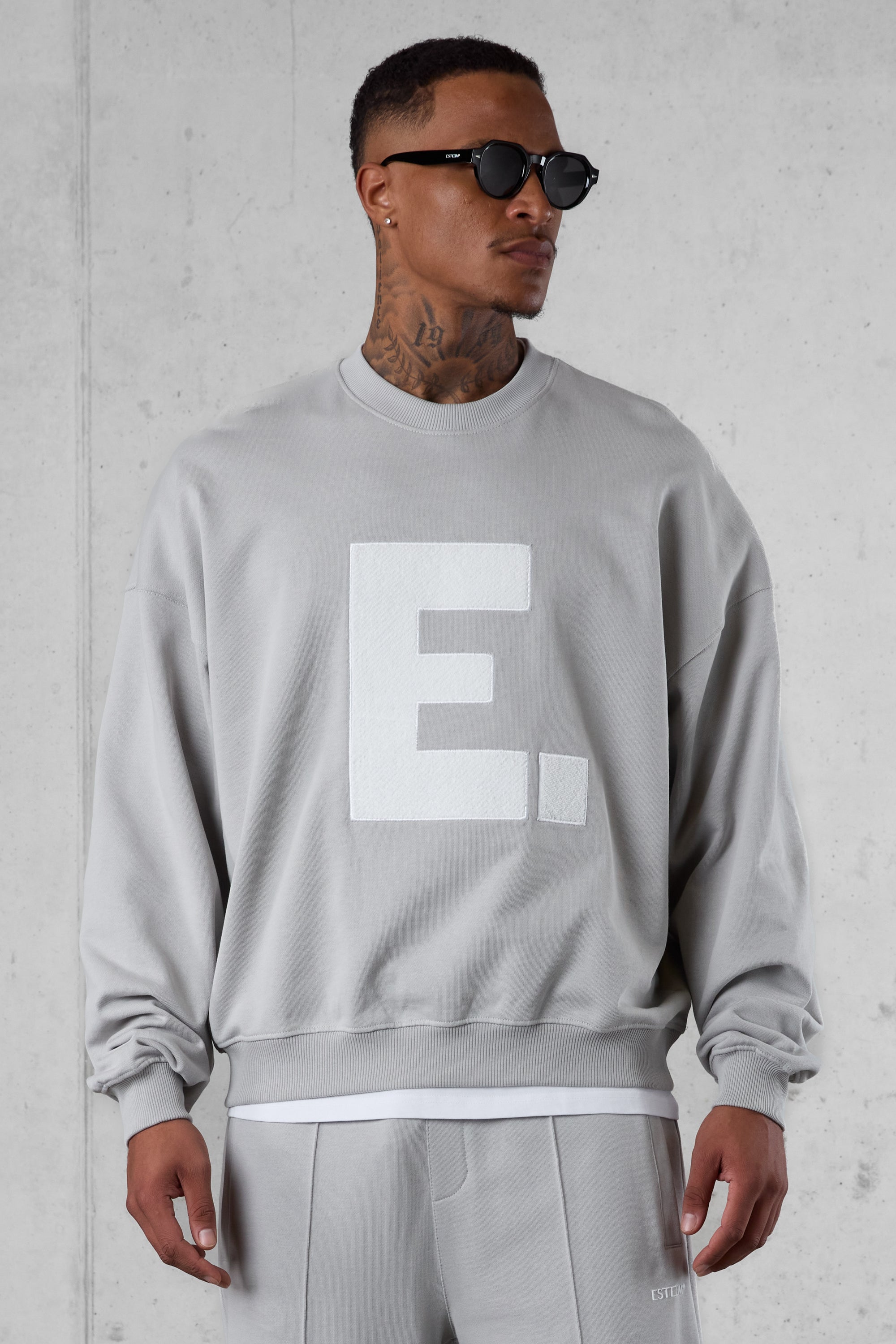 • GREY E. STATEMENT APPLIQUÉ OVERSIZED SWEATER
