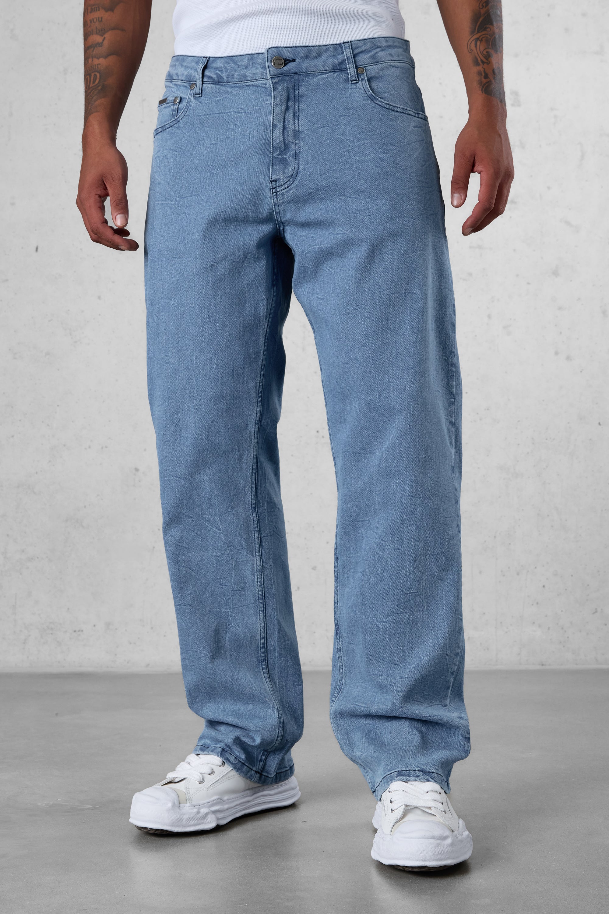 WASHED BLUE WRINKLED STRAIGHT JEANS